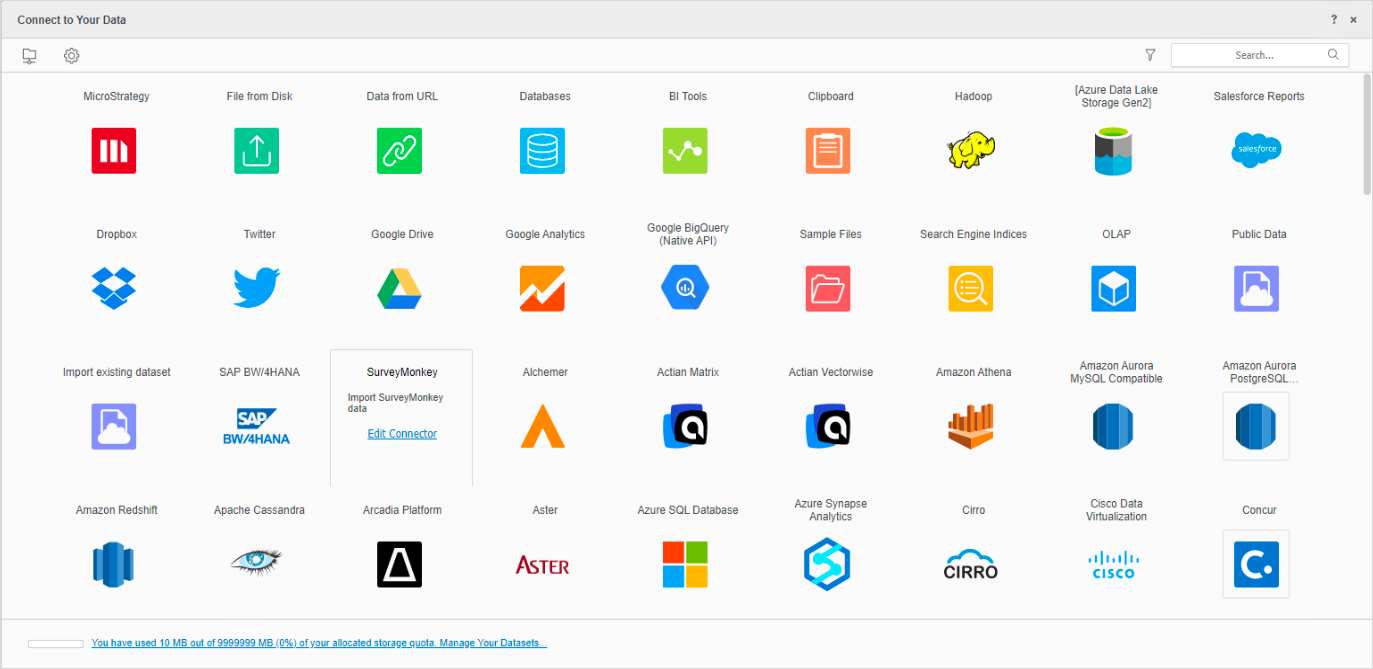 - Choose SurveyMonkey from the Connect to Your Datawindow.