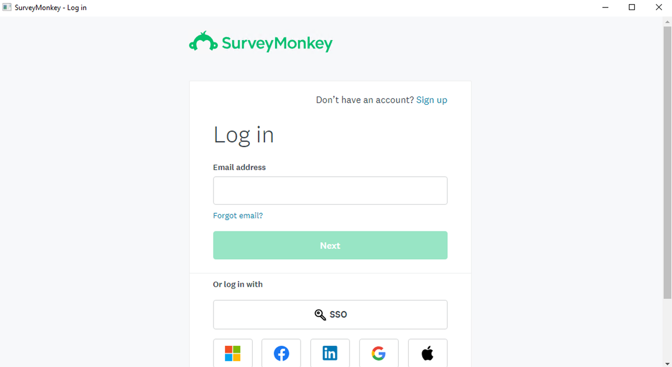 - Click the SurveyMonkey connector icon from the data source list. You are redirected to your SurveyMonkey login page.