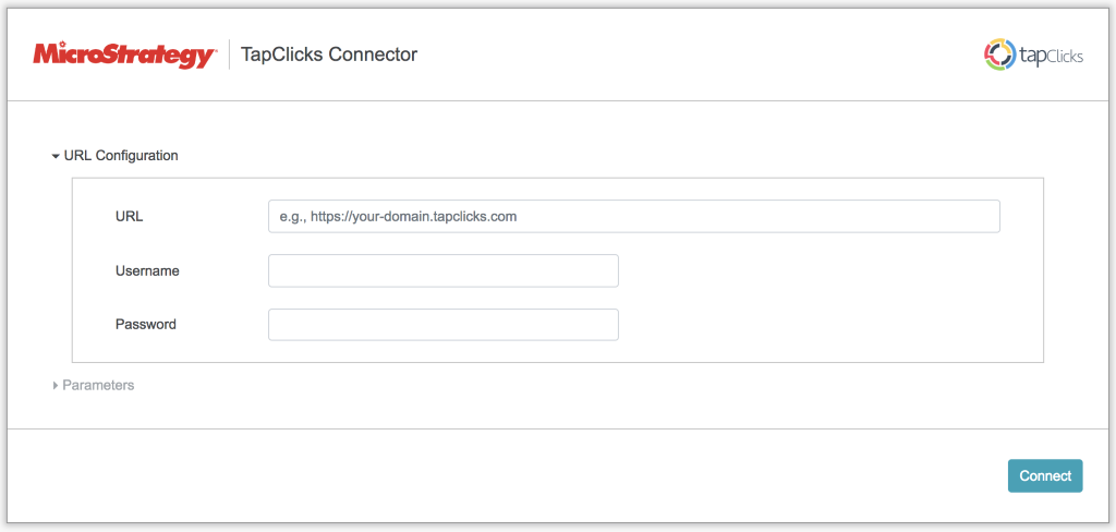 Starting in MicroStrategy ONE Update 12, you can use the TapClicks as part of the new data import experience. If you are using a version earlier than MicroStrategy ONE Update 12, see Use the TapClicks Connector Before MicroStrategy ONE Update 12.