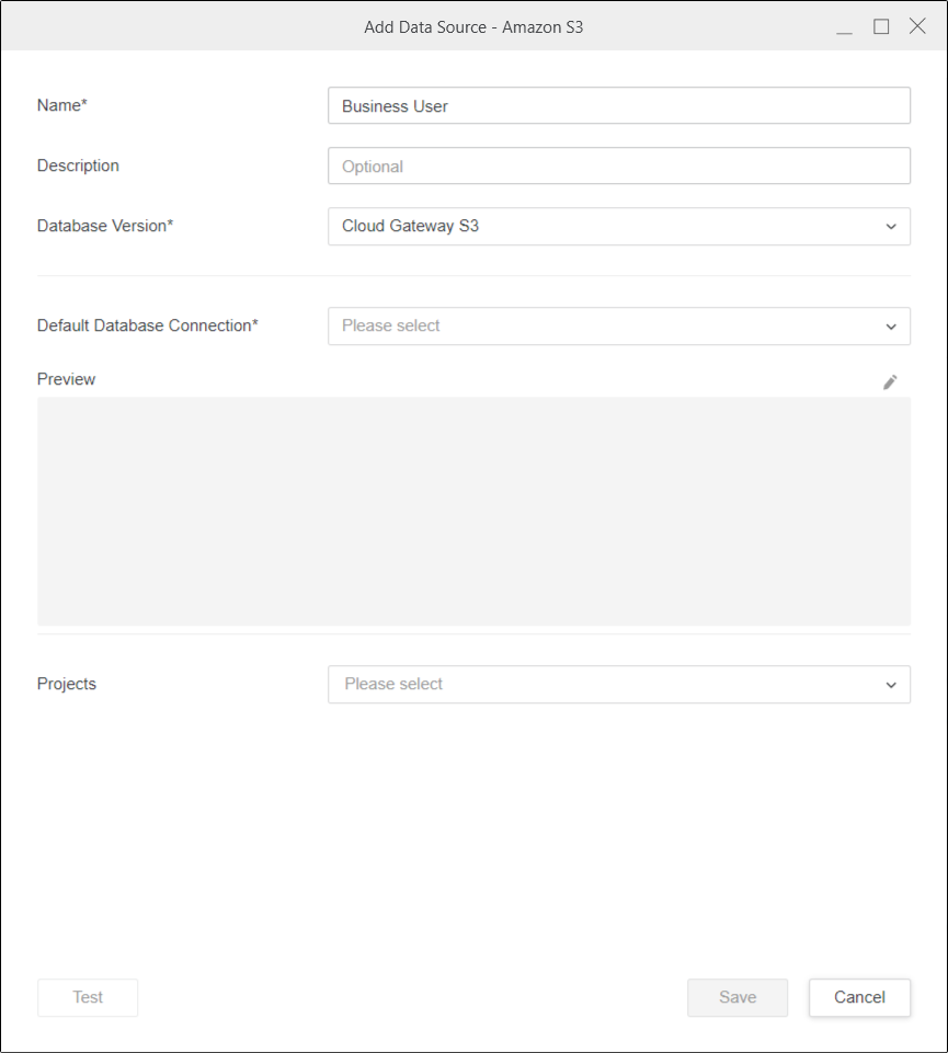 Enter the Name of the database role being created and a Description, if necessary. In Database Version, Cloud GatewayS3 is selected by default.