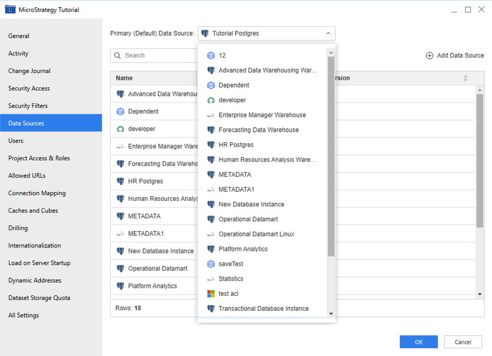 Starting in MicroStrategy ONE (March 2024), you can modify a project's primary data source, as well as add or remove a data source from a project. You must create a data source before you can access the information stored in it.