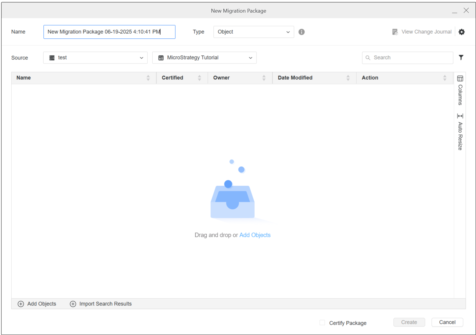 , next to Migrations. The Object package Type is selected by default.You can also multi-select objects anywhere within the Workstation window, right-click, and choose New Migration Package.