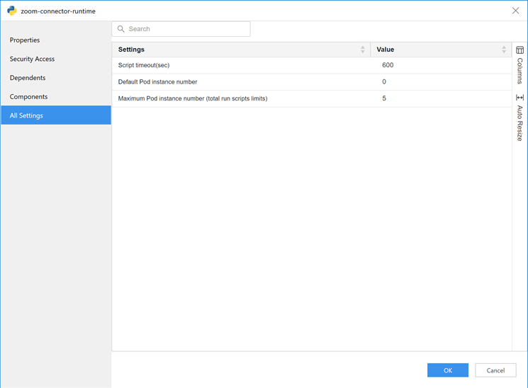 Script timeout(sec): This setting determines the timeout for executing Python scripts. The default value is 600 seconds.