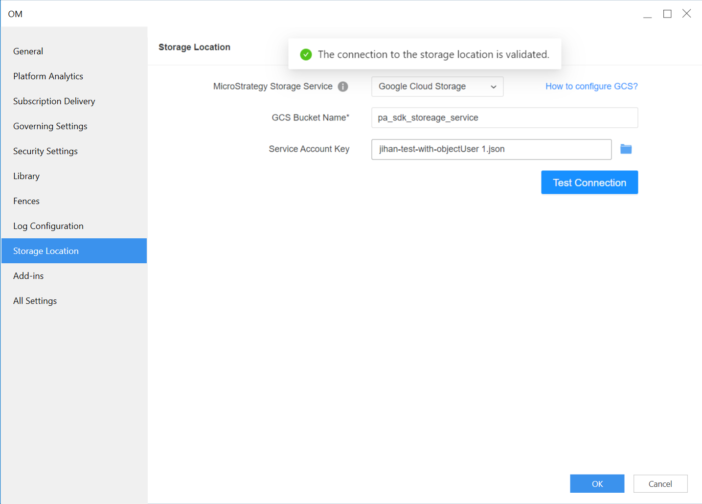 Starting in MicroStrategy 2021 Update 5, you can configure the package storage location for the Strategy Storage service through Workstation for AWS S3 and Shared Folder as a preview feature. Starting in MicroStrategy 2021 Update 7, this feature has been released out of the box and can also be configured with Azure Blob. Starting in MicroStrategy ONE (March 2024), Google Cloud Storage is available as a Storage service option.