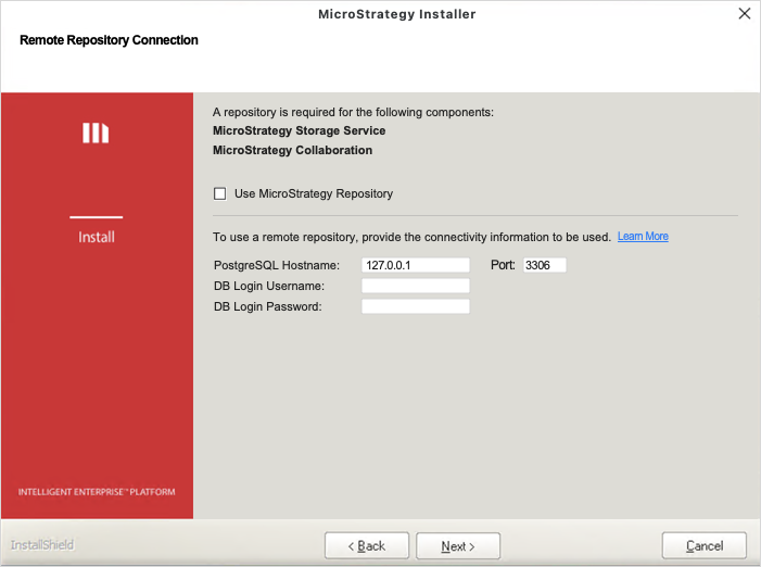 Click Next and finish the installation. In the local Strategy Repository, a database related to the Storage service is created and configured in the remote Strategy Repository.
