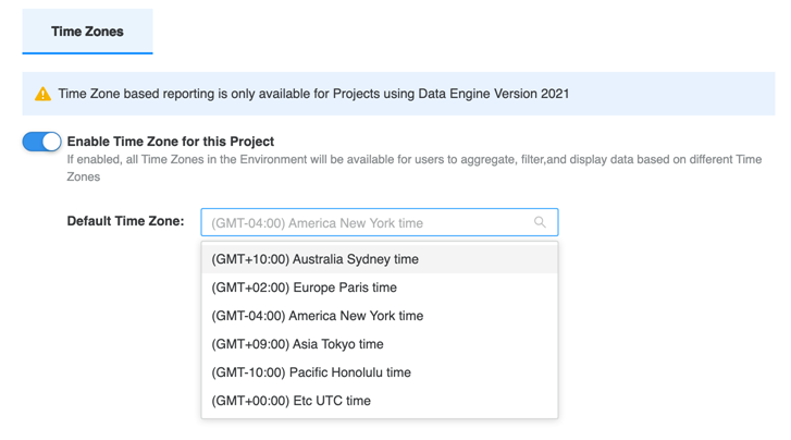 Time zone based reporting and smart attributes are only available for projects using project schema. MTDI is not supported.