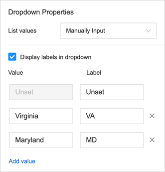 For manual lists, you can define labels to display the data.