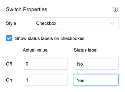 For the switch control type, both switch and checkbox styles are supported.