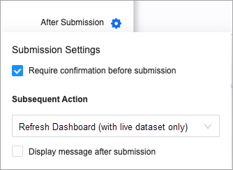 2. Starting in MicroStrategy ONE Update 11, in the Format panel > Transaction Option tab, you can click More next to Transaction. Click After Submission and personalize your submission settings.