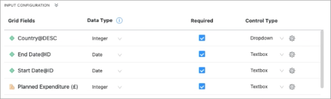 10. Click Input Configuration to set rules and select the control type for your columns.