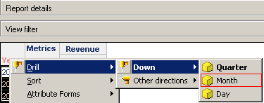For a given report, you can enable drilling in all directions or restrict drilling to lower-level attributes in a given hierarchy.