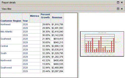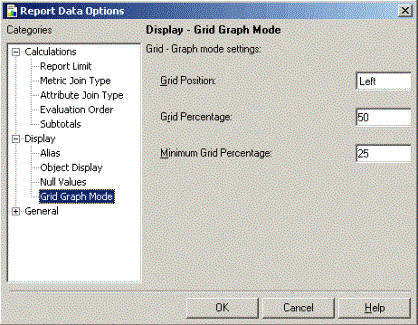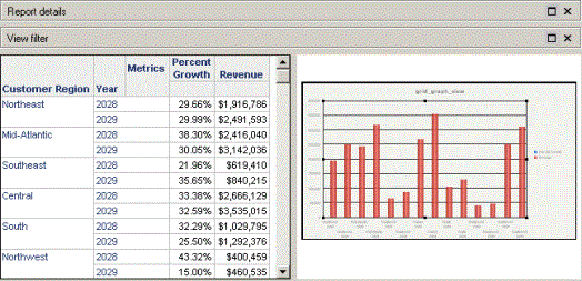 Grid Graph view displays a report as both a cross-tabbed grid report and a graph report in the same screen. You can determine the size and position of the grid (and, in consequence, the size and position of the graph) in Grid Graph view.