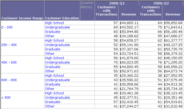 By separating the user's choices into two Object prompts, the designer is able to group the attributes according to user analysis needs. In this case, a user can focus on customer demographics and customer psychographics separately when the user is considering what data to see in the resulting report. Additionally, data for various combinations of demographics and psychographics can be compared by running the report again and answering the prompts differently.
