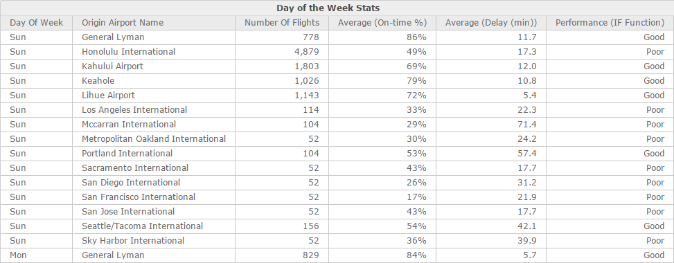 IF((([Average (On-time %)] <= 0.52) And ([Average (Delay (min))] >= 15)),"Poor","Good")