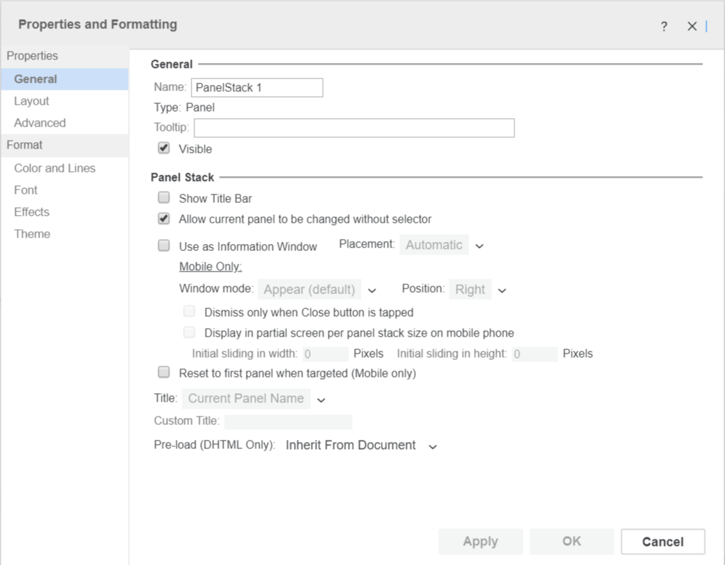 Vamos a quitar Panel 1 barra de título del documento. Haga clic con el botón derecho en el panel y elija Propiedades y formato.