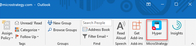 以上の手続きを終えてから 12 時間以内に、ネットワーク上の選択したグループに対して、アドインが配置されます。ユーザーのアカウントに HyperIntelligence for Office を配置すると、Outlook for Desktop と Outlook for Web 上で HyperIntelligence カードを表示することができます。