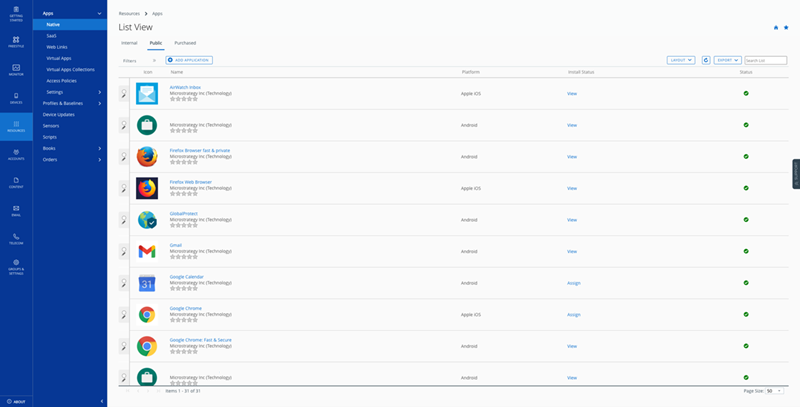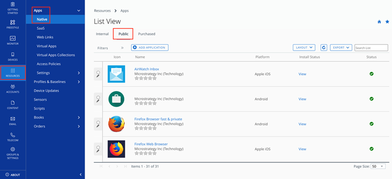 [リソース] > [アプリ] > [ネイティブ] > [パブリック] に移動します。