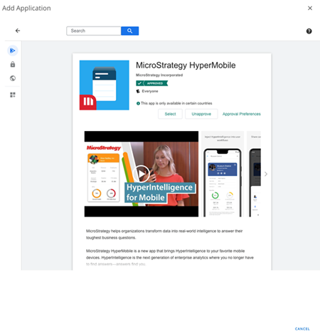 [MicroStrategy HyperMobile] を検索し、アプリケーションを選択します。