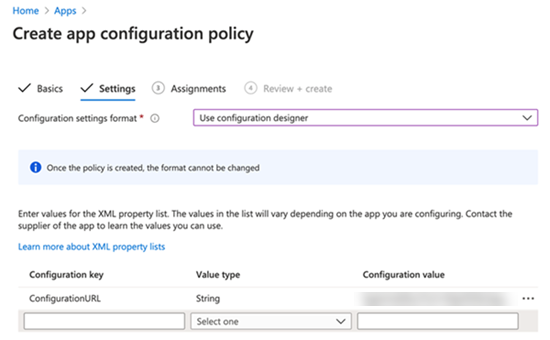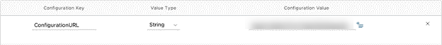 VM Workstation ONE UEM コンソールでアプリ構成を設定するには、アプリケーションと構成のセットアップ前述のとおり、 ConfigurationURL 構成情報を含む URL のキーです