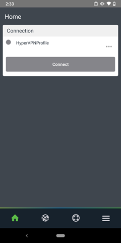 VPN プロバイダー用のアプリを開きます。VPN プロファイルがデバイスにインストールされているはずです。これで、MicroStrategy HyperMobile for Android アプリは、この VPN プロファイルを使用します。