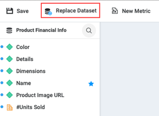 カード エディターの左上にある [データセットを置換] をクリックします。