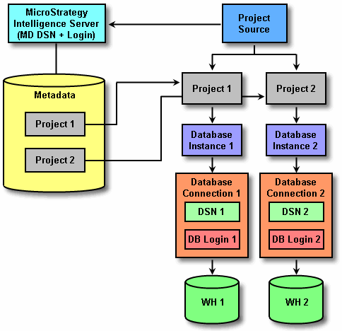 - Con la opción MultiSource de MicroStrategy, un proyecto de MicroStrategy puede conectarse a múltiples orígenes de datos relacionales. Para obtener más información acerca de la opción MultiSource, consulte la Project Design Help.