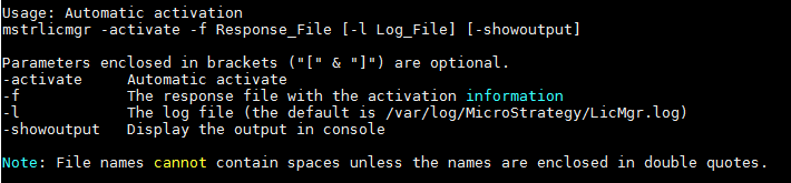 ; Linux mstrlicmgr -activate -f Response_File [-l Log_File] [-showoutput]
