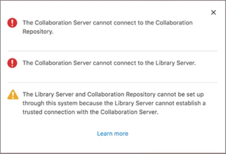 Advertencia: El servidor de Colaboración no tiene como destino el servidor de Library actual.