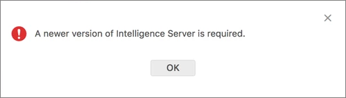 Si el servidor de Library ha establecido un requisito de versión mínima de Intelligence Server y el Intelligence Server actual no cumple ese requisito, aparecerá este mensaje de error.