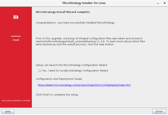 Asistente de instalación de Linux - Asistente de instalación de MicroStrategy finalizado