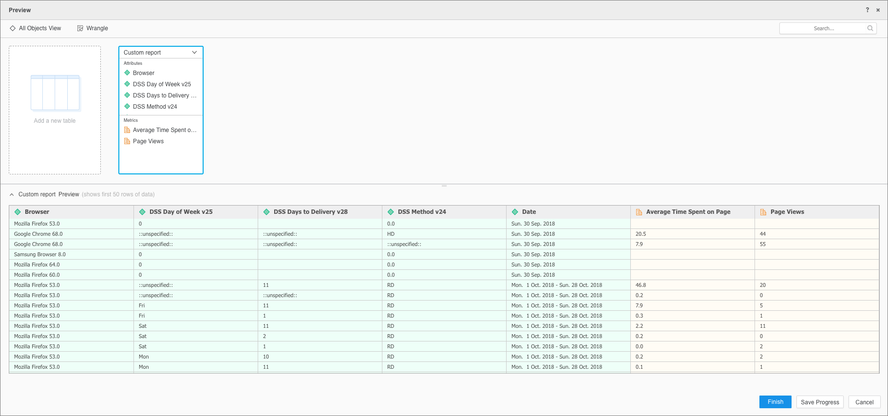 - Sélectionnez les données à utiliser dans votre rapport personnalisé.
