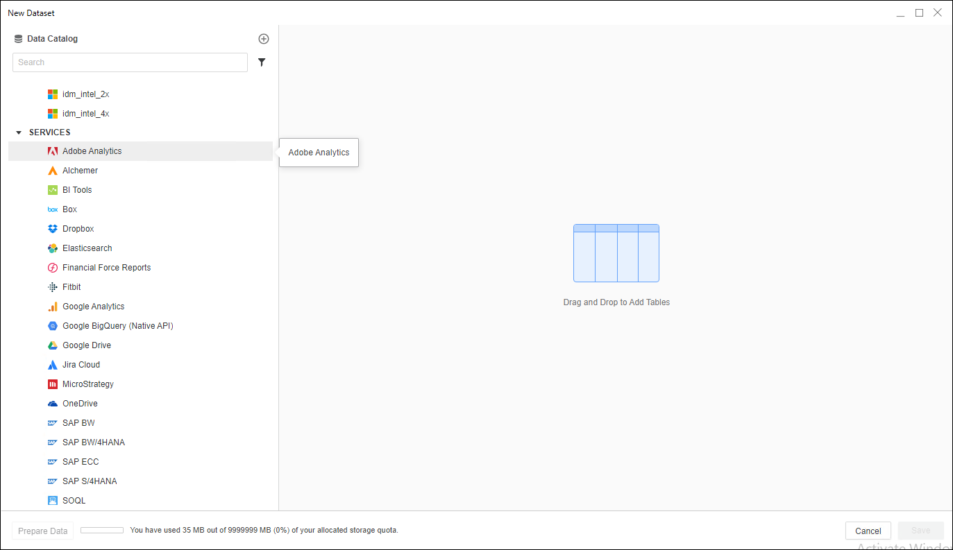 - Choisissez Adobe Analytics à partir de Services liste déroulante.