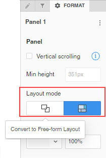 - 패널 요소의 포맷 패널에서 다음을 선택합니다. 자유 형식 레이아웃및자동 레이아웃 .