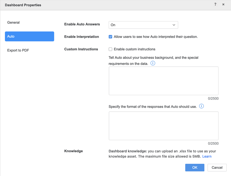 MicroStrategy ONE 에서 시작 (2024년 9월)부터 대시보드 편집기에서 자동 응답 응답에 대한 사용자 정의 규칙을 추가할 수 있습니다.