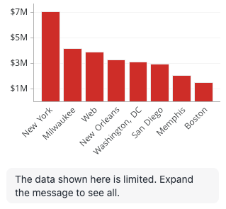 응답이 많은 데이터 포인트를 포함하는 경우 챗봇의 시각화는 명확도와 가독성에 초점을 맞춰 데이터가 제한된 축소 버전을 표시합니다. 이는 막대 차트, 핵심 동인 및 시계열 시각화에특히 적용됩니다. 사용자는 시각화를 최대화하여 전체 데이터 포인트 세트를 볼 수 있습니다.
