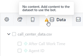 데이터 패널에는 에 추가한 데이터세트가 표시됩니다. 봇 , 개체와 함께 제공됩니다. 다음과 같은 방법으로 데이터를 관리합니다.