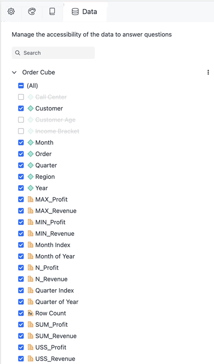 MicroStrategy ONE (2024년 3월)부터 봇이 사용하지 않을 애트리뷰트 및 메트릭을 지정할 수 있습니다. 봇은 질문 또는 응답에 대해 제외된 개체를 처리하지 않습니다.
