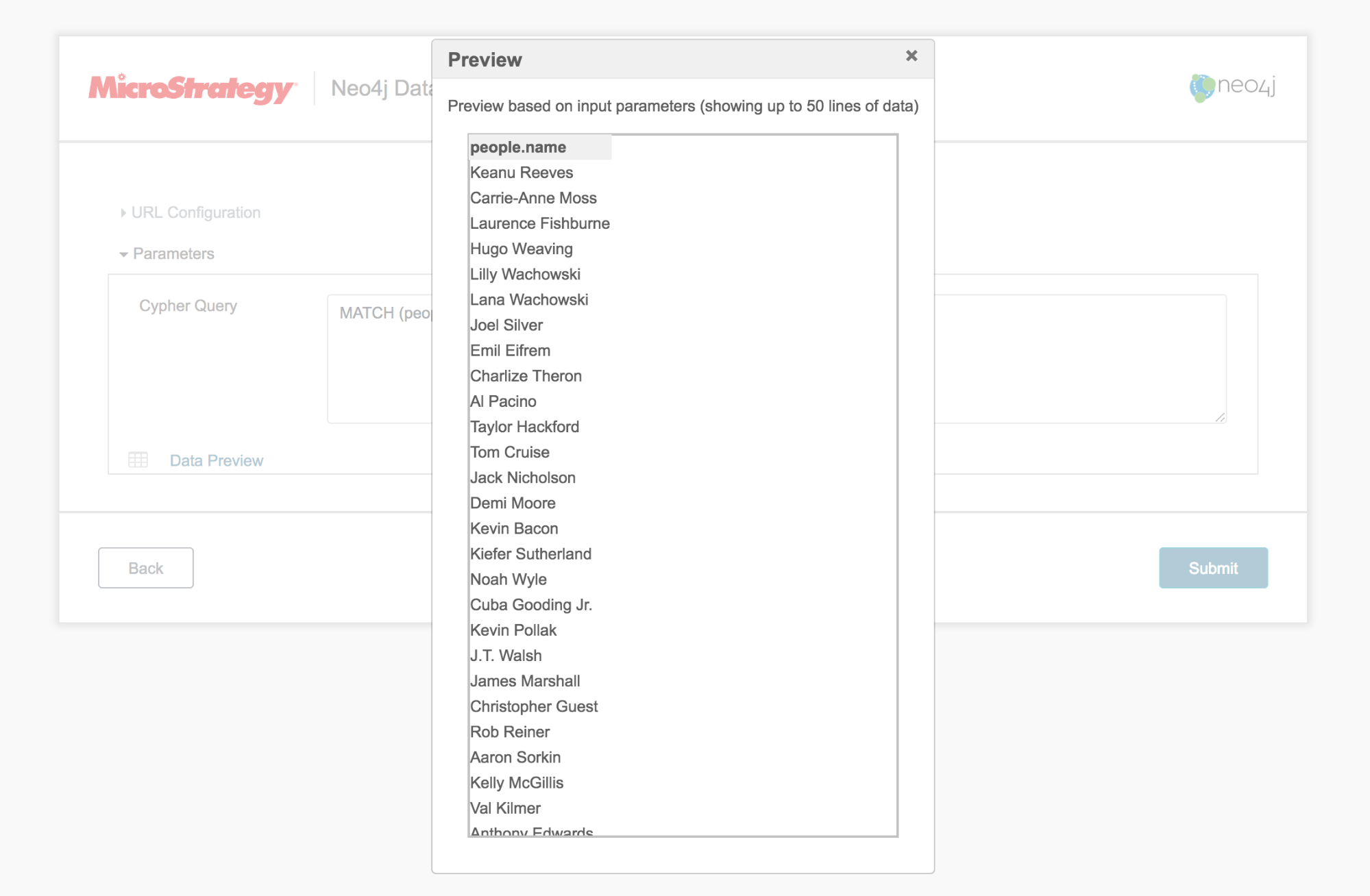 - 제출을 클릭합니다. 가져온 데이터 미리보기가 나타납니다.