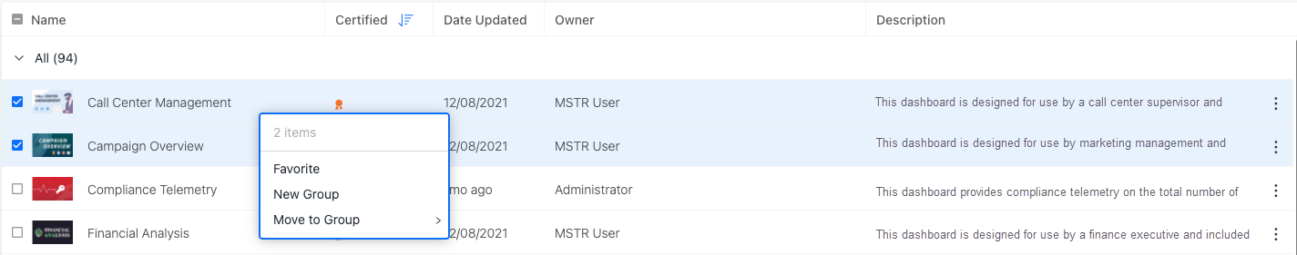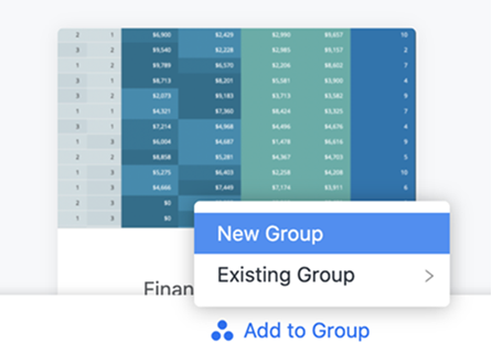 선택한 대시보드 또는 다큐먼트를 마우스 오른쪽 버튼으로 클릭하고 을(를) 클릭합니다. 새 그룹또는그룹으로 이동을(를) 선택하고 그룹을 선택합니다. 을(를) 클릭한 경우에도 이러한 옵션에 액세스할 수 있습니다. 자세히
