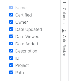 클릭열을(를) 클릭하여 열 사이드 패널을 열고 정보를 활성화하거나 비활성화합니다.
