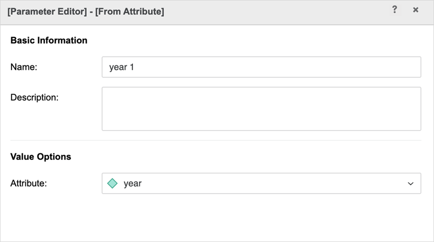 연도 1 및 2라는 Year 애트리뷰트를 기반으로 2개의 요소 목록 매개 변수를 생성합니다.