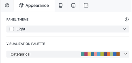 모양 사용자 정의봇패널 테마 및 시각화 색상 팔레트를 선택합니다.