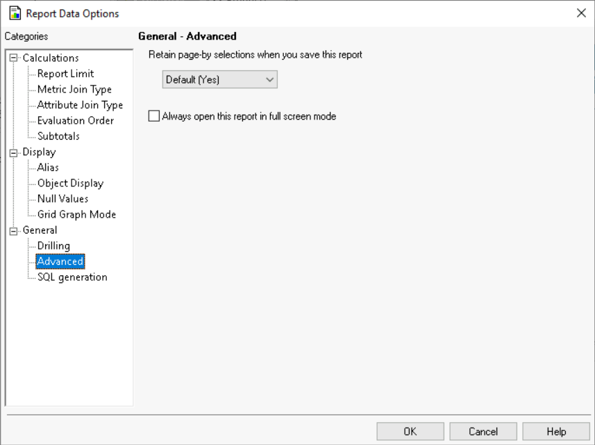 MicroStrategy Developer 의 리포트 데이터 옵션