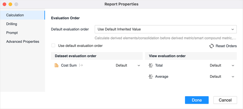 MicroStrategy이전에 VLDB 속성이라고 하는 요소와 다음과의 리포트 데이터 속성을 포함하는 기타 항목이 포함된 고급 속성 대화 상자를 추가했습니다. 평가 순서 .