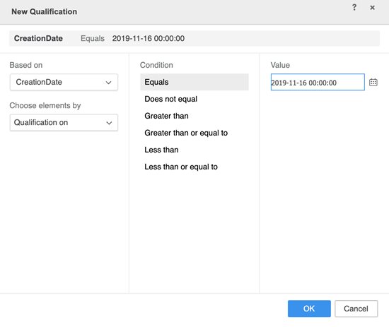 - 값 필드에 을(를) 입력합니다. 2019-11-16 00:00:00 .