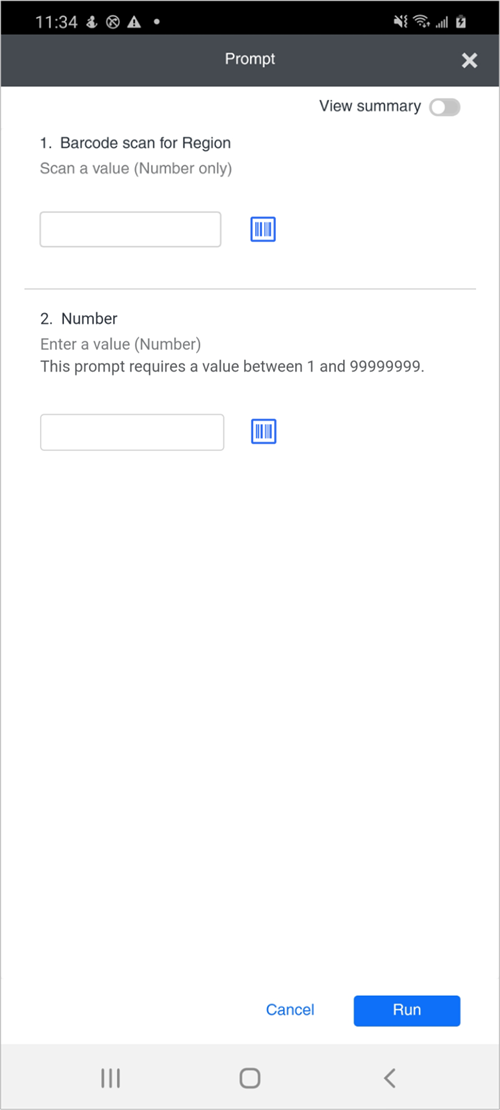 에 대해 바코드 리더 프롬프트를 사용하려면MicroStrategy모바일, 참조모바일 장치용 프롬프트 소개 .