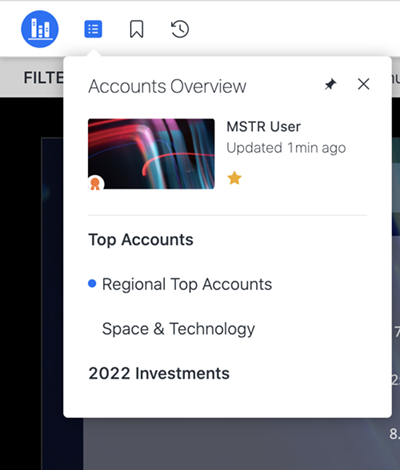 을(를) 클릭하여 대시보드를 Library 홈 페이지의 즐겨찾기 섹션에 표시합니다.