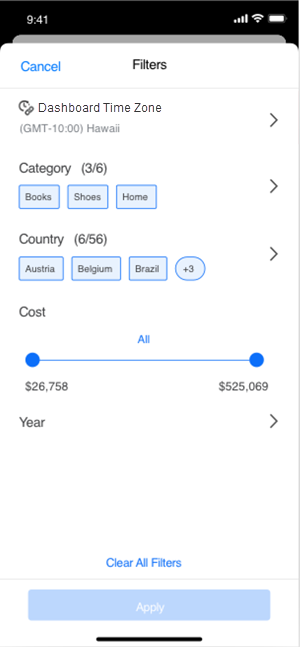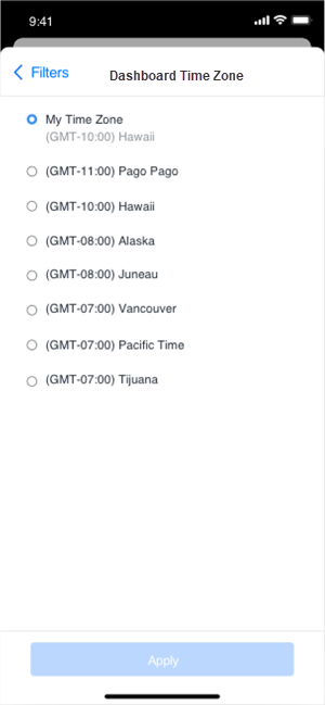 Library Mobile에서 시간대 인식 애트리뷰트가 있는 대시보드를 엽니다.