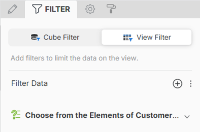 to display the Filter panel. Any filters included in the cube display on the Cube Filter tab. They are not editable because they are included in the cube.