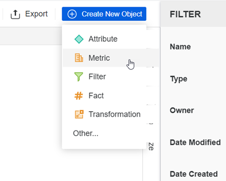 5. In the top right corner, click Create New Object and select Metric.